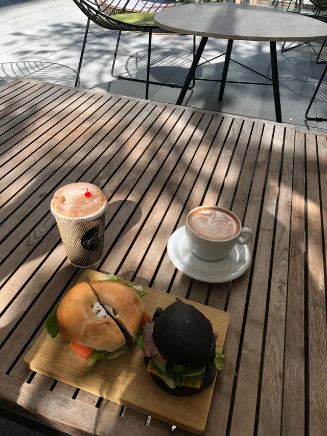 三文魚Bagel和韓式牛肉竹炭bagel。兩杯都點了mocha。三文魚加上cream cheese配搭不錯。牛肉是慢煮的,韓式的醬汁濃濃的。餐廳適合戶外坐,環境不錯。Mocha味道一般。店員不會serve你,自助式的。…查看更多