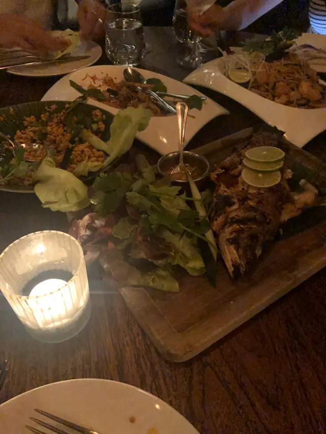朋友推薦Tuna Tataki 為必試前菜。吞牙魚不是一般香港餐廳serve的,加上特別的微酸醬汁,還有魚籽和Wasabi。Snapper為主菜,加上泰國香菜,整積較大,適合幾個人享用,配上白酒十分夾。環境優美,價錢在中環來說適中。…查看更多