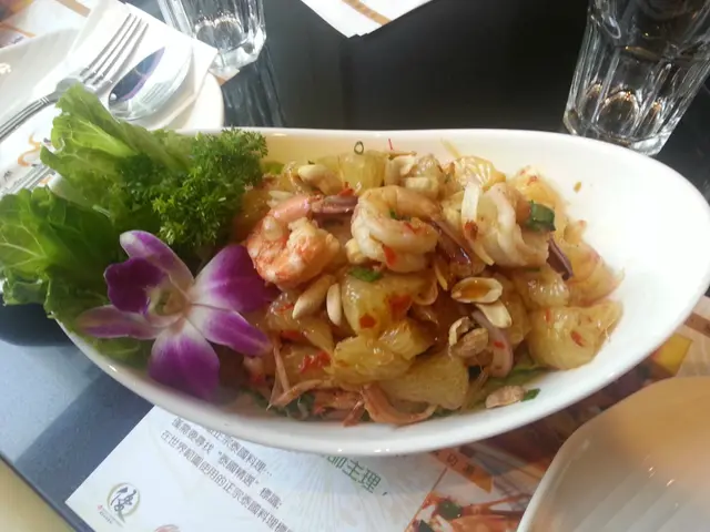 同幾個朋友約左食Lunch, 見到呢間新開既曼谷泰菜 就入去試下座位寬敞,裝修充滿泰國風情我地四個人叫左七樣野, 有三樣食品值得推介泰式豬頸肉撈麵, 菠菜麵既爽身彈牙又健康, 配以炸蒜連同烤得香脆的豬頸肉和酸辣汁, 非常美味, 是夏天之選 糯米釀雞翼, 把炒香既糯米釀入雞翼內, 再煎香, 糯米入面加左花生同臘腸, 好香口, 這個菜式比想像中好, 脹卜卜, 食落口感幾好, 唔太肥膩金抽子蝦球沙律, 金柚子超甜, 蝦球都幾新鮮, 配上秘制醬汁, 正…查看更多