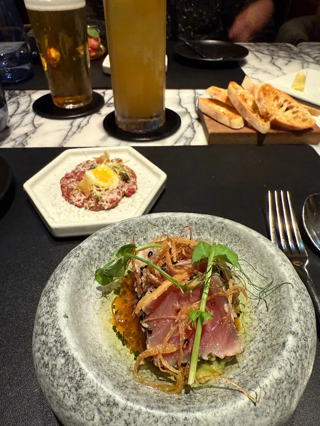 四個女仔,好耐無見,想搵個地方食飯敘舊。朋友推介兩個地方,一個打卡好靚,一個好味,不約而同選了好食。畢竟,美食當前,顏值可以稍後再說。Clarence 地方有啲難搵,但一上到去,有驚喜,靚嘢。環境舒適優雅,法式風情濃厚,讓人一踏進去就感受到那種精緻的用餐氛圍。睇下個菜單,個set dinner 咁抵食嘅?因為之前食過間一星,又貴又唔好食,朋友話呢間都係擇星大廚主理,但個價錢幾親民。對比起那些動輒過千的米芝蓮餐廳,Clarence 的定價確實讓人眼前一亮,性價比相當吸引。四個人,由麵包開始開心傾到尾。法式麵包新鮮出爐,外脆內軟,配上兩款香滑牛油,已經為整頓飯開了個好頭。接著上場的前菜更是讓人驚艷,每一道都精心製作,賣相精美。牛肉他他好食,新鮮牛肉剁得幼細,調味恰到好處,入口即化的質感配上微妙的香料層次,展現出廚師的功力。海膽鮮甜,那種來自海洋的純淨甜味在舌尖綻放,配搭巧妙,沒有過度調味掩蓋海膽本身的鮮美。個龍蝦爽口好味,肉質彈牙,處理得當,保持了龍蝦的天然鮮甜,醬汁的搭配也恰到好處,提升而不搶奪主角風頭。仲有法國特色田雞腿同田螺,好味。田雞腿肉質嫩滑,法式烹調手法讓這道傳統菜式展現出不一樣的風味層次。田螺更是經典法式前菜,蒜蓉牛油香濃,田螺肉質爽彈,每一口都是滿足。每道菜都令人開心,從賣相到味道都無可挑剔,讓人對接下來的主菜更加期待。到主角,加了錢,Grain Fed Prime Rib (+$440),出場已好有驚喜。一個煙燻木盒俾大家睇同打卡,真係好靚,唔止靚煮medium 煮得恰好,粉紅肉色,好食好睇。當服務員打開煙燻木盒的一刻,那陣煙霧繚繞的視覺效果確實令人印象深刻,不愧是Instagram-worthy的呈現方式。牛肉本身的質素相當出色,grain-fed的牛肉帶來更豐富的脂肪分佈和更深層的味道。Medium的熟度掌握得恰到好處,外層略帶焦糖化的香脆,內裡保持著誘人的粉紅色澤,肉汁豐富,每一口都是享受。配菜的搭配也很用心,蔬菜的處理保持了爽脆的口感,醬汁的調配更是畫龍點睛,提升了整道菜的層次感。生日驚喜,甜品又係好味。餐廳細心為主角準備了生日甜品,不但味道出色,賣相也相當精美。仲有細心為主角影即影即有,俾大家留念。這種貼心的服務讓整個用餐體驗更加完美,也體現了餐廳對客人的重視和用心。甜品本身製作精良,甜度適中,口感層次豐富,為這頓豐盛的法式大餐劃下完美句號。呢一餐好開心,又好食又坐得舒服。環境優雅舒適,服務態度親切專業,每道菜都展現出廚師的用心和技巧。野飲又特色又有made in Hong Kong 之選,餐廳的酒單選擇豐富,既有經典的法國酒款,也有本地特色選擇,照顧到不同客人的喜好和預算。整體而言,Clarence 確實是一間值得推介的法國餐廳。以這個價位能夠享受到如此水準的法式料理,性價比相當高。無論是慶祝生日、朋友聚會,還是商務宴請,都是不錯的選擇。餐廳的用心從每一個細節都能感受到,從食物的品質到服務的貼心,都讓人留下深刻印象。值得推介。…查看更多