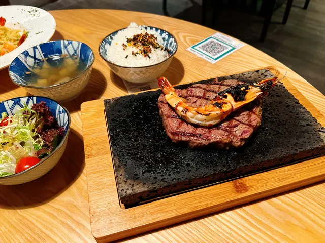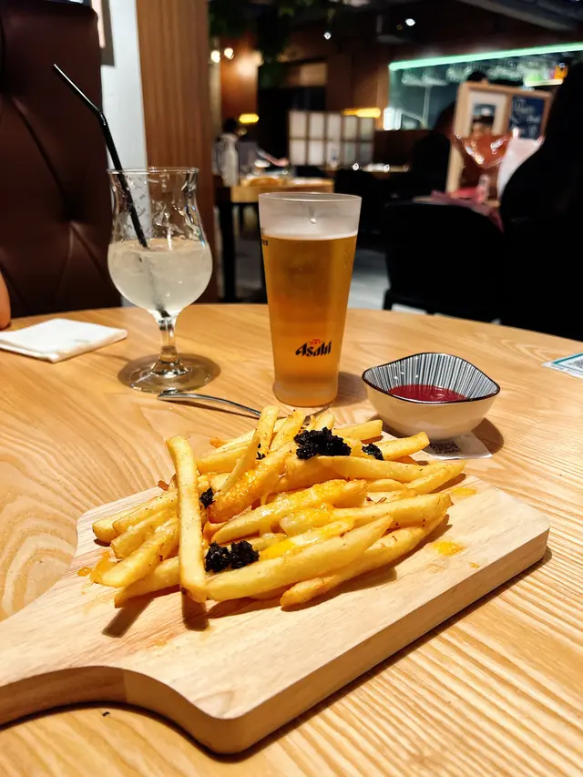想去觀塘搵happy hour,呢間都算幾抵,20:00前酒類都好平,有一款直頭$99小食加一杯酒,不過今日我哋叫咗啲主食,今晚試咗佢哋嗰石燒,澳洲牛肉眼,上枱原來成份定食,估佢唔到咁抵食,上枱時舊石已經熱辣辣,舊肉眼外皮見佢仲紅紅地,但由於舊石仲係加熱緊,所以如果唔鍾意食得太熟嘅朋友,應該快啲夾起,可以自己控制幾多成熟都幾好玩🥰,另外叫咗個香蒜欖油蝦意粉,意粉質感好煙靭啲蝦又爽又彈牙,而且估佢唔到有咁多隻😂,我哋再叫咗個烤雞泡魚乾送酒,趁熱食嘅時候雞泡魚乾非常香口,好有當年喺韓國食嘅感覺😍再叫咗個黑松露薯條,黑松露混入左薯條嘅油香,真係茄汁都唔需要 🤗…查看更多