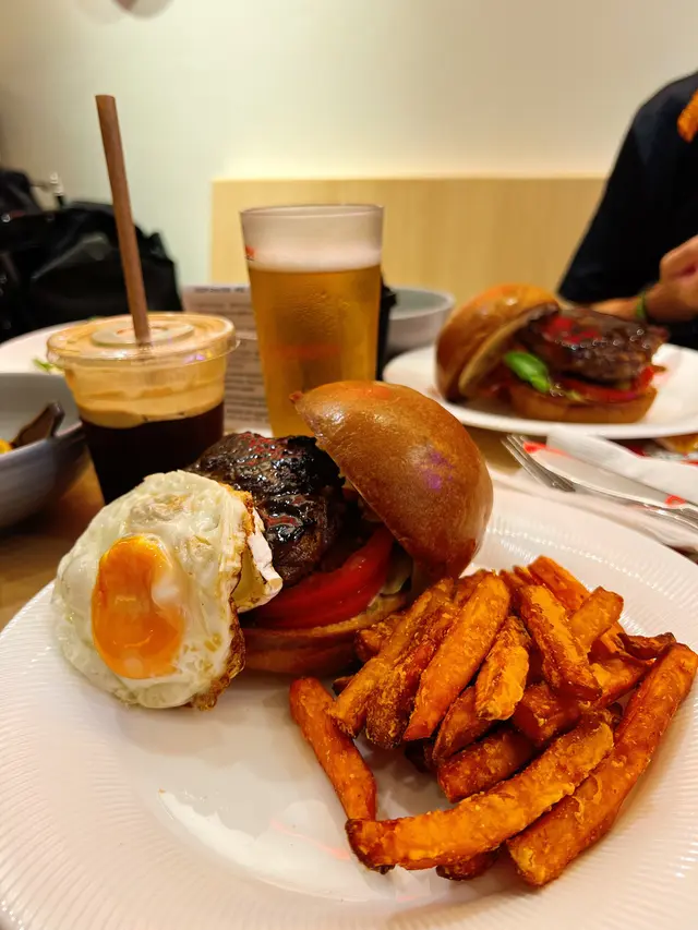 近期寵介人氣餐廳,立即去試吓先,星期六11:30到已經唔知排左幾多人係前面😮‍💨,今日一行4人2狗,裝修行日式非常舒服,仲有幾款為寵物度身訂造嘅食物,biru仔試左焗南瓜有機豚肉批$68,成個批好colorful,賣相好靚,biru仔三扒兩勃就已經食晒,我估應該真係幾好食😂,煎蛋布里芝士和風燒汁牛肉漢堡包配炸番薯條$168,人食嘅都好好味,上碟時仲熱辣辣有煙冒出,番薯條又甜又脆,再加支啤酒,立即唔記得晒嗰日出面30幾度😂…查看更多
