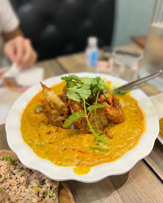 有時想食泰國菜又唔想落九龍城,哩間都叫幫到手😂,近近地又唔使坐得咁迫夾,今日叫咗個咖喱軟殼蟹,其實都係為咗食蒜蓉包條🙈,不過佢個咖喱甜甜地辣辣地幾好味㗎,軟殻蟹亦炸到脆卜卜、當然唔少得主角蒜蓉包條啦,我估呢個都係佢哋嘅招牌菜😂,麵包好厚好大條,落咗勁多牛油同蒜蓉焗,用嚟點咖喱真係不得了、另外都叫咗個生菜包,如果唔食得辣嘅朋友,記得叫佢走辣,因為都幾辣㗎,最後我想講,佢嗰度有個啤酒優惠,寫住逢星期一至星期四係有特價,食飯當日係星期四,不過埋單係正價,應該又係果啲假期前夕🤦🏻‍♂️餐牌當然冇寫明,我都費事同佢坳🌚希望餐廳留意下啦。…查看更多