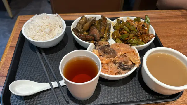 平時淨係下午茶同夜晚嗌小菜或粉麵,今次第一次食佢三餸一湯,聽人講話每日唔同,就有六個餸揀三個餸,提提大家落單要嗌Number,個人覺得幾好食,不過晏晝太多人屬於快餐模式,要快來快走,搞到食得有啲急,環境有啲熱。但唯一勝在啲嘢冇乜味精,食完唔會好口渴!值得一讚👍🏻我係12:30入座,所以入去唔使等位,但見到一點後就非常之多人,同埋入咗會有啲亂。同埋午餐時段通常都要搭枱,眼見個個食飯都係出晒汗,如果開大啲冷氣會比較好。⚠️唔會提供3餸一湯餐牌,大家記得門口睇完再入座。😆最後,我會揀無咁熱先再黎食。…查看更多