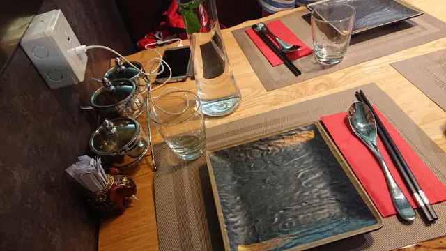 突然朋友找食飯,臨急臨忙用openrice搜尋附近新餐廳,即時用apps book到枱 20:00,還有88折優惠!抵!去到附近,沿住巧明街一找,就見到光燦燦的門面,可惜友人手持拉車一大部,到了才知要爬樓梯上,苦! 入座后,即看到枱上的插電位,比什麼都讚
