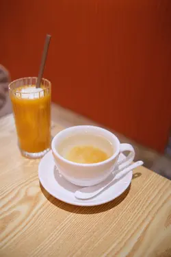 Cafe坐低有塌塌米或者傳統既枱選擇呢度絕對係甜品控嘅天堂!伯爵茶布甸牛角包窩夫🧇伴碟有細細樽伯爵茶奶加落個croffle仲有好香既牛奶軟雪糕至於布甸既伯爵茶味勁濃,推薦喜歡茶既朋友仔!士多啤梨戀人刨冰🍧超大個刨冰,刨冰口感細膩不會太快溶上面有鮮士多啤梨🍓,增加口感去到底層,仲有牛奶加左刨冰入面!辣泡菜八爪魚紫菜包飯除左甜品,都仲有咸食可以簡紫菜包飯即叫即整!藥菓肉桂楓糖咖啡藥果係一種韓國傳統食品,帶有花的形狀,配上肉桂楓糖,香味十足,但飲落不會太甜!義式咖啡雪糕affogato 賣相精緻,食到最後有杯咖啡嘆下都唔錯 @coffeehwajeon …查看更多