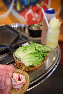 一坐底已經好多款前菜準備好,有泡菜,酸蘿蔔、涼拌豆芽,波菜等等,店員見食得七七八八就會幫手refill!芝士粟米漿- 滿滿嘅芝士配上粟米,半溶既芝士特別惹味!爐邊蛋 - 泡菜混入雞蛋漿,可以無限添加,食落好香口嚴選和牛豬梅花套餐配韓式拌麵秘制醬油豬五花,醬香濃郁,肥而不膩,入口即化,醬料好入味,估唔到又幾有驚喜 !和牛入口即溶,牛脂豐富而且搶火,要小心容易燒燶,可以夾着生菜一齊食!套餐入面仲有菠蘿同埋菇類,放喺網上燒都可以過過口癮!韓式拌麵嘅口感彈牙,伴有泡菜同埋青瓜絲,不錯薑橙梳打&玫瑰佛手柑梳打兩杯嘢飲大大杯,有氣嘅梳打令人大快朵頤!…查看更多