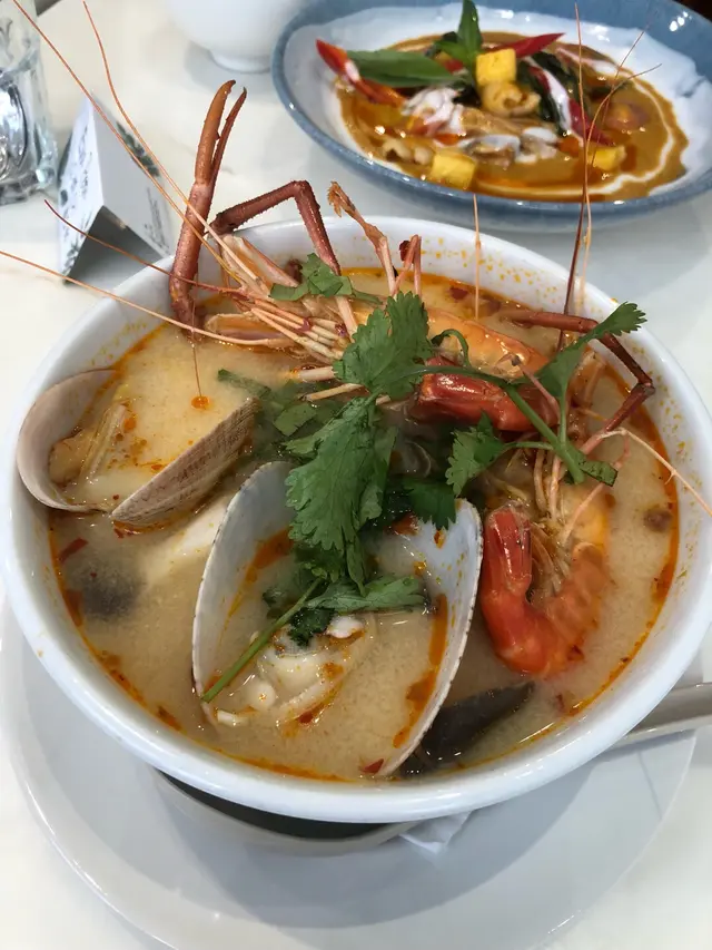 賣相十足的泰國菜 1988 2019-01-25Lunch time又同朋友發掘觀塘區美食。呢間泰國餐廳之前有聽人講過,但一路無行過黎試,因為位置幾僻,但試過一次,下次想食泰國野又可以黎門口裝飾幾有氣氛餐廳環境都唔錯,適合傾計Lunch set 都幾多選擇有飯有面,但飯為主,如果有pad thai 更好。。我叫左呢個河粉,賣相一流蝦好大隻,成碗麵都好多料,海鮮都好新鮮,特別係蝦好多膏但如果剝埋蝦殻上會更方便我呢種懶人冬陰公唔算辣,如果再辣d會更好,因為我好辣朋友叫既紅咖哩賣相好吸引,佢話鴨好嫰滑,咖哩好香好好味我點既西柚茶,西柚味愈飲愈勁,泰式茶既味道好特別朋友點既奶茶,佢話奶泡好香滑,都好好飲…查看更多+ 5以上食評乃用戶個人意見 , 並不代表OpenRice之觀點。讚好分享賣相十足的泰國菜 1988 https://s.openrice.com/QrLT0g2So00檢舉 張貼 評分4味道4環境4服務4衛生4抵食推介美食冬陰公湯河紅咖哩燒鴨配白飯熱西柚茶熱奶茶用餐途徑堂食用餐時段午餐