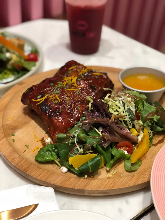 認真製作,鬆餅不得了😆 HeSheEat (綠楊坊) 2018-10-08之前試過銅鑼灣間HeSheEat,食物非常不錯。所以之前見荃灣開分店,已經想帶媽媽黎食。今次就同媽媽來食好野荃灣HeSheEat開在對正地鐵站出口的綠楊,位置十分方便顯眼,店內裝修都係行少女風,粉紅色既設計,好岩女仔或者d情侶黎食野打卡我地平日夜晚七點幾黎食,唔算多人呢杯紅茶味道岩岩好,唔會太甜,有茶味又有果味,雪葩都好重莓味沙律份量夠,用料都新鮮,但唯一是牛油果多點更好魷魚圈炸得岩岩好,配埋個醬食好正Bb豬肋骨煮得好淋,好滑好入味,調味酸酸甜甜好開胃,配埋個香橙醬一流。意大利飯足料,上面既炸洋蔥配搭得好好,帶子新鮮,好多菇,飯既軟硬度岩岩好,調味都岩岩好,帶芝士味得來又唔會好餾,重帶啖啖黑松露味呢個甜品不得了,鬆餅焗得好鬆軟,甜度岩岩好,軟綿綿既口感,配埋拖肥蜜糖同焦糖雪糕一齊一口食,真係好正,焦糖雪糕帶焦糖脆脆都好好味焦糖香蕉上面層焦糖都岩岩好,唔會太厚太甜餐廳既野食同飲品選擇算多,以後荃灣食靚既西式野又有好地方了…查看更多+ 5以上食評乃用戶個人意見 , 並不代表OpenRice之觀點。讚好分享認真製作,鬆餅不得了😆 HeSheEat (綠楊坊) https://s.openrice.com/QrLT0r7mm00檢舉 張貼 評分4味道4環境5服務5衛生4抵食推介美食士多啤梨錫蘭紅茶配雜莓雪葩炸魷魚圈配墨汁蛋黃醬燒24小時慢煮bb豬肋骨配香茅橙醬黑松露煎北海道帶子意大利飯局焗鬆餅(拖肥香蕉配焦糖雪糕)用餐日期2018-10-03用餐途徑堂食人均消費$275 (晚餐)