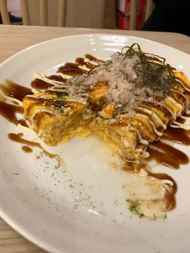 第一次食,整個menu 偏貴。叫咗個三文魚牛油果三文魚子飯,面頭個生蛋完全冇味,食落好奇怪,得個睇字。另外大阪燒八爪魚卷,睇圖勁多八爪魚,實物少,仲要喺軟林林的,唔好期望好似章魚丸咁有咬口,仲要勁多油,仲要$78真係唔值。唯一叫咗個明太子三文魚蛋包飯係好食。…查看更多