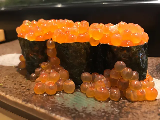 The first one I would like to introduce is this Ocean Sea Bass . It is also one of my favorite . Nodo - Guro Aka Rosy Seabass is hardly find in normal sushi shop and usually this luxurious piece would only being served in High- End Omakase shop .Hence , I was quite surprised when I saw this on the menu . No doubt , this fatty fleshy fish never disappoint me , it is super tempting! After being seared , it even added a touch of greasiness and its luscious content goes underneath your tongue for quite a long while ! Fish Roe ( 魚子軍艦)