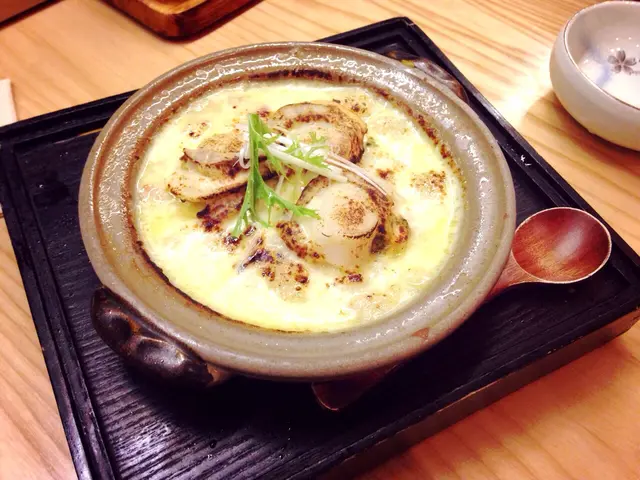 Although this has been seared , this razor clam is comparatively light and refreshing . Razor clam , also named as “ Pen Clam “ , its size is very long and often bigger than our head !The flesh and color look similar as scallop , but razor clam create a firmer texture and urge more concentrated flavors as well . The texture was so interesting , its borderline was a bit sticky , slimy at the first bite , but then , it is surprisingly springy afterwards . Uni ( 雲丹)
