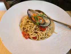 鮮蜆白酒煙肉蒜香天使麵
