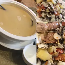 趁住放假,同一班朋友入去三聖食海鮮,今次都係呢到,因食過好味,同埋價錢合理,不過今次就由朋友發板,先上海鮮湯,海鮮材料十足,有大大隻嘅瀨尿蝦,同埋啲魚,蕃茄薯仔等材料煮成,味道鮮甜,手快有得飲多碗!小食就點了這裡出名嘅泰皇芝心蝦丸,外面有香脆嘅麵包粒,入口香脆,咬開流心嘅芝士從這個位置流出,味道濃郁!海鮮就點了傳統嘅上湯焗龍蝦,夠原味,一入口就知道十分新鮮,因佢嘅肉質爽口彈牙十分鮮味!還有推介嘅白酒忌廉煮花甲烏冬,大大隻花甲配上白酒忌廉汁味道更加濃郁,還有煙韌彈牙嘅烏冬真係想加個飯混埋一齊食!豉油皇鮑魚亦十分大隻厚身肉質煙韌爽口,加上個豉油汁就更新鮮味!還有大家都食得津津有味嘅油鹽焗奄仔蟹,蟹膏十足入口真係啖啖蟹膏,而肉質亦十分鮮甜,還有豉椒蟶子皇米粉底,蟶子皇大大隻配埋個豉椒汁一齊入口超正,但要親熱食,等耐了個米粉底就會開始變淋,喜歡香脆嘅朋友要留意!最後食肉狂嘅朋友覺得唔夠肉追加了招牌炸子雞,炸得都十分香脆肉質嫩滑!一班人這裡真係一個唔錯嘅選擇!…查看更多