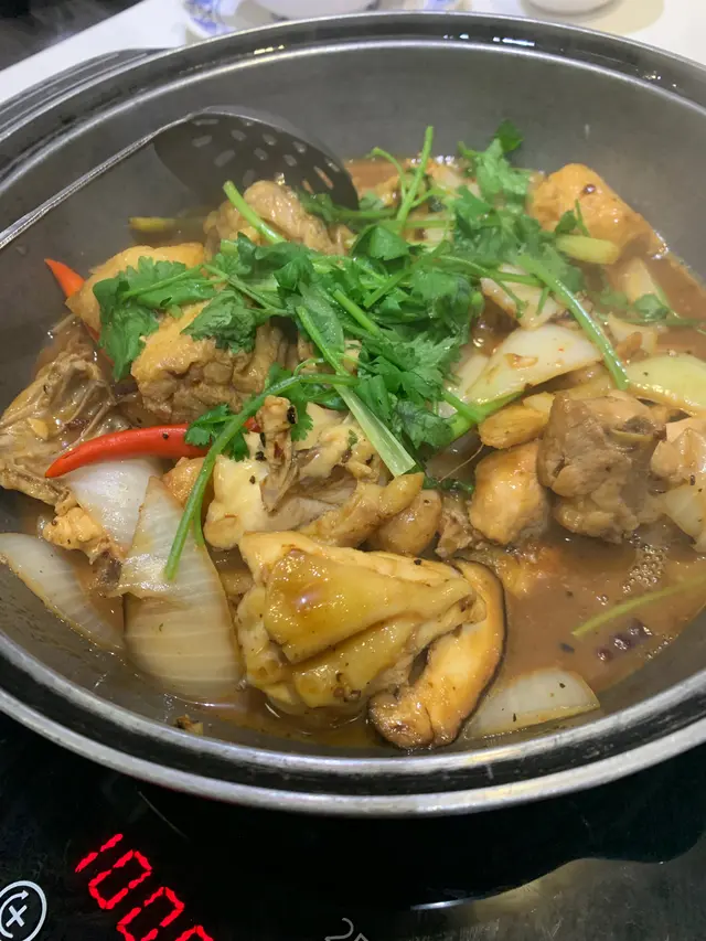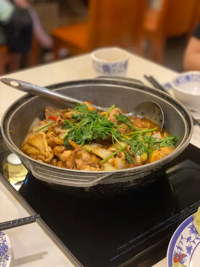 今日約左朋友係北角食飯,好耐冇食雞煲,所以就揀左呢間餐廳試下。估唔到星期一晚都咁多人,好彩咁岩仲有最後一張枱!老重慶奇妙雞煲朋友唔食得辣,所以揀左呢個奇妙雞煲,醬汁幾特別,甜甜地又幾夠味、幾濃郁,雖然個煲入面有少少辣椒不過又唔會覺得辣喎。呢個係細煲,但都有好多件雞,雞幾滑,大細剛剛好,唔會好大舊食得好辛苦,又唔會太細舊好多碎骨,入面既配料仲有豆卜同冬菇,索左啲醬汁好好味。呢個雞煲值得一試!同埋下次有機會想試埋個麻辣雞煲!鮮味香煎墨魚餅見到牆身張相幾吸引,又寫住人氣,所以就叫黎試下。墨魚餅份量都幾多,幾厚身,又煎得夠香口,個底仲有幾塊蝦片!炒包心菜平時茶餐廳冇乜機會食到,見呢到有就叫黎食下,都唔錯!除左小菜,仲見到有得打邊爐,有機會都可以試下。…查看更多