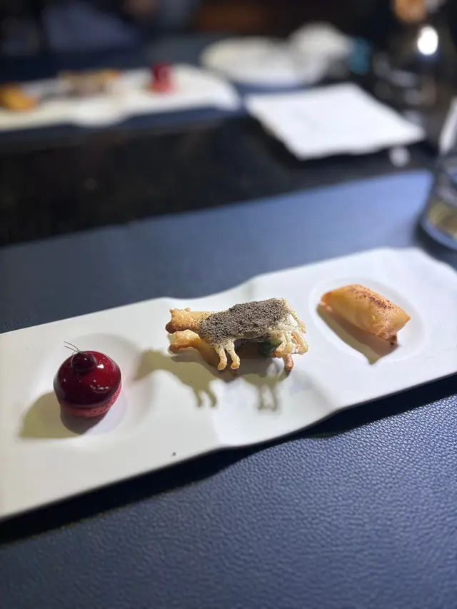 初頭睇呢間餐廳嘅裝修,以為會好貴,但係原來食物嘅份量好大份,同埋質素都好好,喺呢個地段,唔算貴之餘,位置都好方便。燒味飯外賣更加係抵,最平$38都有一個,喺附近返工嘅話,都係一個平靚正嘅選擇。餐廳裝修走傳統粵菜館風格:木系牆身+中式花格木屏風、金屬吊燈、暖黃燈光、富中式意境嘅畫作、白色枱布、深色椅套、感覺古典又帶少少高級感,氣氛唔嘈,枱距夠開,有返咁上下酒樓格局但比傳統酒樓更乾淨整齊。入口位亦係木質櫃台、玻璃門設計,整體好適合公司飯局或者朋友食飯。🟡 八味一口豆腐外表係金黃色小方粒,一人一口啱啱好。外層香脆、內裡軟滑,配上香辣蒜碎八味粉,好香口。🍍 脆皮鳳梨咕嚕肉咕嚕肉都幾多肉汁、炸漿唔厚、醬汁係偏酸甜、帶光澤嘅果味汁,鳳梨份量足,整體味道開胃又唔會死甜。咁樣講好似將佢講low咗,但係佢口感同埋配嘅醬,食落會有少少諗起麥樂雞,但係係新鮮嘅肉整出嚟嘅版本,有fast food嘅惹味但係又有新鮮食材嘅感覺。🦀 乾逼拆蟹肉粉絲煲呢道係今日嘅亮點之一!粉絲吸晒蟹油、蒜香同醬汁,入口係濃郁海鮮味。面層仲有金黃酥脆炸蟹肉可以撈埋食,口感層次好豐富,而且「乾逼」做法令粉絲乾身,香、乾、入味,蟹肉份量,超級多,冬天食尤其滿足。🍠 香芋紫心丸外層香脆,一咬入去係好香芋味嘅紫薯蓉,內餡綿密香甜。鍾意芋頭甜品嘅人應該會好鍾意。…查看更多