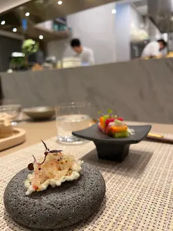 Wagu Fole Groas Tartarte bites : 前菜點了和牛鵝肝他他配迷你油炸鬼是充滿創意的fusion food 也用了港版的油炸鬼他是屬於油炸鬼的變奏版 一口版 也不是脆身硬口的配合起和牛鵝肝 油脂油脂的食物是佐酒良品和牛鵝肝這個姐合是沒有不好吃的理由吧