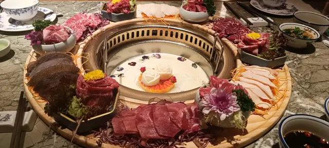 五十年代懷舊風情主題的火鍋店餐廳環境闊落,通風都很好擺放各款不同懷舊品,例如留聲機,郵筒湯底:日本牛 乳玫瑰湯中間有牛乳冰成的玫瑰花湯底有日本全脂牛乳,木瓜非常養顏賣相又吸晴食物香江拼師傅將牛肉片砌成立體花花超靚整齊地放置在圓圈的木板上賣相好似藝術品超好看!款式有:安格斯肥牛,牛柳粒,牛小腿,牛俐,牛心椗,黑柏葉重點菜之一七彩餃子七種不同精美內餡的餃子包括:黑:蟹肉黑松露黃:午餐肉粟米藍:蟲草花餃橙:金華火腿菜肉綠:冬菇薺菜紫:和牛香茜白:姬茸野菌賣相顏色和味道內餡都十分出色桃花緣以桃味為主,配上梳打同乳酸顏色十分粉紅少女味味道亦算特別火煱醬料亦算多選芫茜,蔥,蒜蓉,指天椒,碎花生等等埋單時店員會給一人一張名信片可以放左郵筒寄給自己或朋友都可以架…查看更多