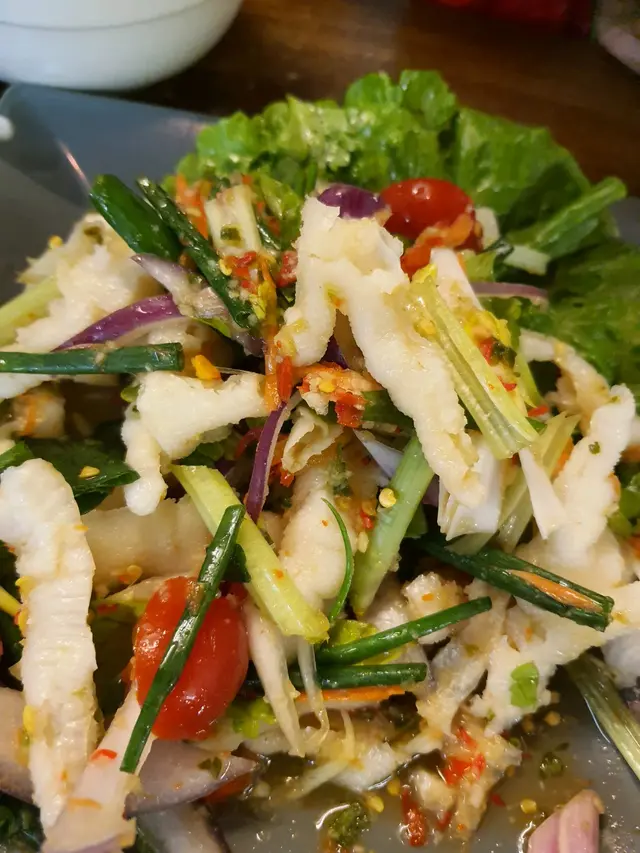 今日行街原本主要係旺角,但因為查到深水埗玩具街有我要嘅玩具數量凈好少,咁同女朋友立即落去,行完買到心頭好當然就肚餓,就搜尋下附近有咩好食,之後搵到好近有E間泰菜就試下,去到門口串燒已經好吸引,但今次冇試到,綜合食物價錢又唔係貴,同其他泰菜價錢差唔多,上食物速度都快,可能少人,食物質素好好,首先講泰式鳳爪,酸辣配合適中,唔會偏向一面,柚子大蝦沙律,唔會好似有D舖頭多菜放底,然後幾粒柚子就算,佢個柚子大蝦沙律必食