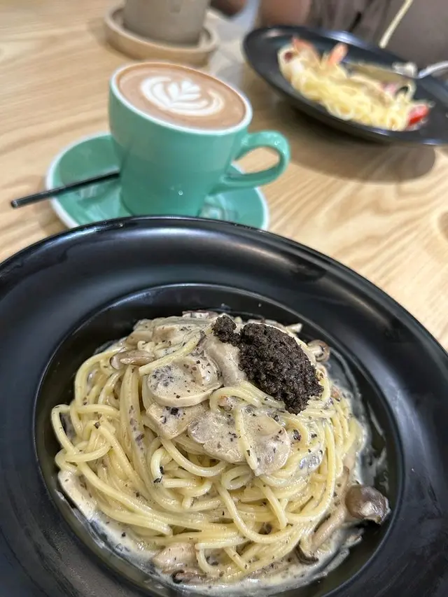 黑松露意粉好香,勁多黑松露🍝🍝🍝喜歡個汁有cream香,沾到意粉而不膩份量算多,但好食既意粉多多都食得哂🤣朋友食既蒜香奶油蝦意粉都話正,下次要試試!☕️咖啡都好有驚喜,叫左杯latte拉花工整,啡同奶味好平衡有種幾特別果香,好似帶少少草莓🍓甜當然仲有甜品,梳乎厘蛋味十足🥚2款都唔會太甜朱古力香蕉🍌pancake蛋味更出抹茶味就幾回甘🍵鍾意食甜既人可能略嫌有d苦不過紅豆份量超多,伴紅豆黎食可以中和返苦味…查看更多