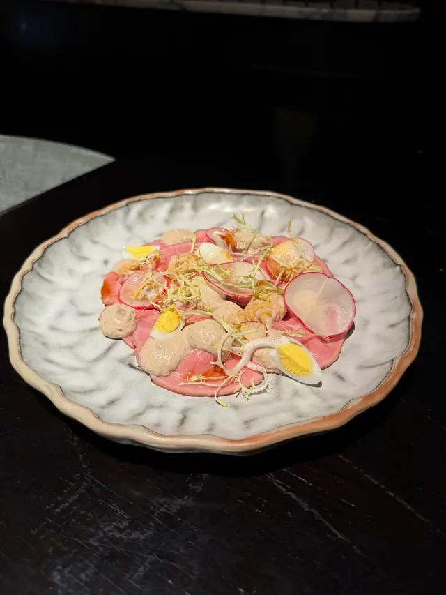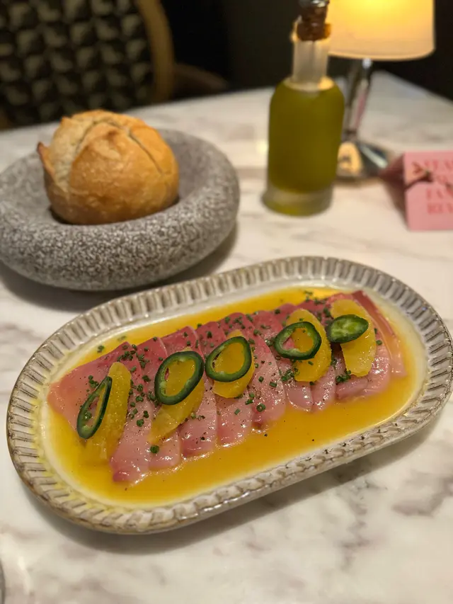 最近去咗一間氣氛超正嘅omakase 仲係一間居酒屋 有單點食物🥰 師傅同餐廳氣氛都好出色 師傅招呼親切 餐廳嘅氣氛又夠chill 另外仲有唔少清酒選擇 係一個好地方去享受美食同放鬆😎Omakase 梅前菜三點由龍蝦沙律開始 沙律醬嘅調味啱啱好;第二樣係牛蒡 爽口清脆;最後係醃蘿蔔 估唔到佢用咗紫蘇葉醃製 所以味道幾清新🥰御造 - 季節の牡蠣來自岩手縣嘅蠔 海水味啱啱好 唔會太鹹🦪 蠔肉鮮甜又漲卜卜 厚肉好好味🤤 另外仲加左新鮮嘅三文魚籽 增添層次旬 - 刺身四點四款時令嘅刺身😛 第一款係深海池魚王 佢好肥美 魚味好香 另外師傅夾咗紫蘇葉同薑 平衡池魚嘅魚脂;第二款係燒目鯛魚 輕輕燒一燒再加麵豉醬 估唔到同魚肉幾夾;第三款係金目鯛 肉質爽口 肥美 配岩鹽食更加突出鮮味;第四款係長崎縣野生拖羅 顏色粉嫩 油脂豐富 好味💕和之物 - 海膽杯個日用上吞拿魚蓉配海膽同三文魚籽 簡直係將我嘅最愛放埋一齊😉 海膽鮮甜creamy 吞拿魚蓉都好香鮨 - 握の寿司五貫第一款係北寄貝 師傅特意𠝹開 令口感幾爽 而且貝味鮮甜 第二款係赤貝 赤貝好厚肉又彈牙 我好鍾意😊 第三款係燒左口魚 左口魚上𠝹上細紋 加上炙燒 魚油滲出 係口腔內爆發今日🤪 第四款係星鰻 厚肉 入口軟糯 最後一道係海膽手卷 師傅俾咗超多超多海膽 味道鮮甜 加上赤醋飯 不錯不錯👍🏻一品料理 - 煮物吸物 - 土瓶海鮮湯甘味 - 時令果物 (西瓜同大大粒嘅青提🍉)…查看更多