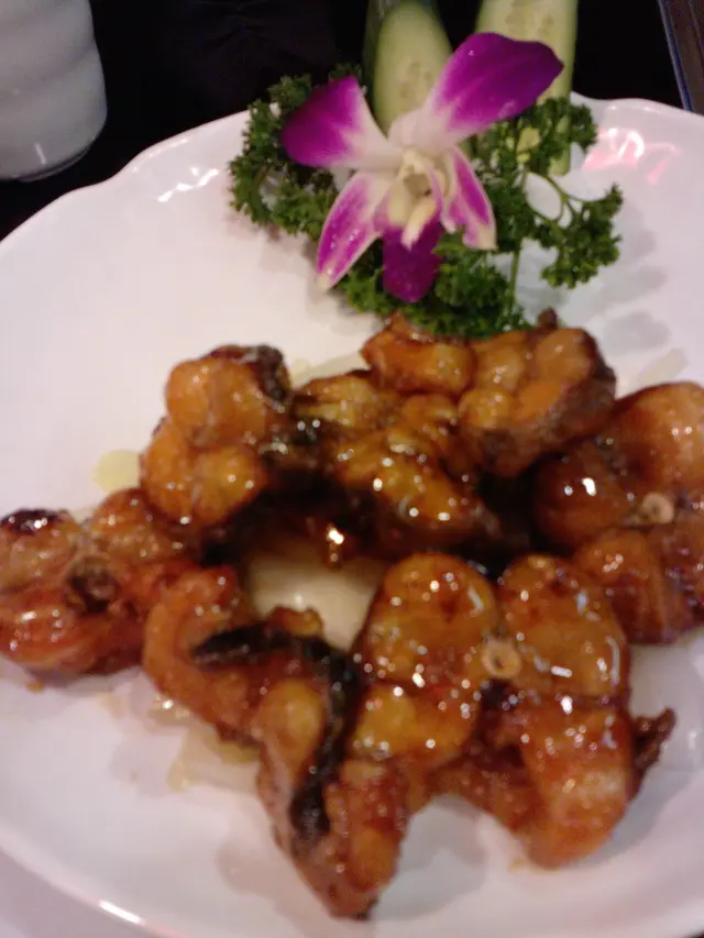 燒海蝦 --> 蝦殼上好多香料, 第一啖感覺上咸左d, 但係襯落蝦肉喥就岩岩好, 所以吃呢味餸, 一家要用口咬, 唔好用手滅~ 蝦肉都好夠新鮮, 一d都唔"霉"