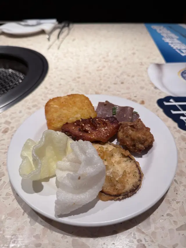 每次搭車經過都見到呢間夜宵站好多人排隊,趁住今晚冇嘢做,同老公兩個人二人世界一於試吓先!$10 串燒~本身以為係gimmick 野,估唔到都好多款選擇!我哋嗌咗雞翼尖、鵪鶉蛋、雞軟骨、白福花、四季豆、多春魚、芝士煙肉蕃茄🤣🤣好似淨係冇叫午餐肉同埋紅腸🤣🤣🤣無腦式亂點(o^^o)最估唔到嘅係每一串嘅份量都唔少喎,最鍾意食雞翼尖!足足有五隻㗎~真心,咁嘅價錢,喺街邊篤穿魚蛋都唔止啦,仲要冇得坐添!真心好抵食!芝士流心蛋大啡菇我諗應該係呢間餐廳最出名嗰樣?基本上台台都見到有,大大隻啡菇上面有隻流心蛋,仲鋪滿芝士添,口感非常豐富!因為真係無腦式係咁撳叫咗好多款,重點推介以下呢幾樣!鹽燒牛舌 好厚切!非常濃味!肉味十足!好有嚼勁!清酒煮蜆好!鮮!甜!大顯隻隻飽滿,而且無沙,好鮮啊!炸魷魚酥配明太子醬 簡直係配啤酒嘅神器!一啖一條,真係食到意猶未盡!焦糖芝士蛋糕 crazy ~真係即燒即上!燒白鱔 肉厚鮮甜,好juicy !!原條肉碎茄子 🍆 都真係幾特別!平時鋪滿蒜蓉就食得多,今次嘅茄子係鋪滿肉碎,當啲茄子鋪滿咗肉碎,充滿肉汁,真係非常之惹味鍾意食辣嘅朋友記得要加埋辣椒粉啊!燒墨魚 🦑烤得外脆內軟,煙靭有口感,而且唔會燒得好乾,保留到鮮甜味!另外,最值得一提嘅係雖然呢間舖頭係串燒店,但係成間舖頭非常之乾淨光猛,一啲油煙味都冇,坐得好舒服!我哋食咁耐,出面排足咁耐,可想而知呢間舖頭平時係幾咁受歡迎!除咗燒烤之外,舖頭仲設有燒肉套餐,價錢好親民;自攜生日蛋糕1磅以下仲唔收切餅費,岩哂同朋友慶祝~免加一,營業時間到半夜12:00(23:30 last order)…查看更多