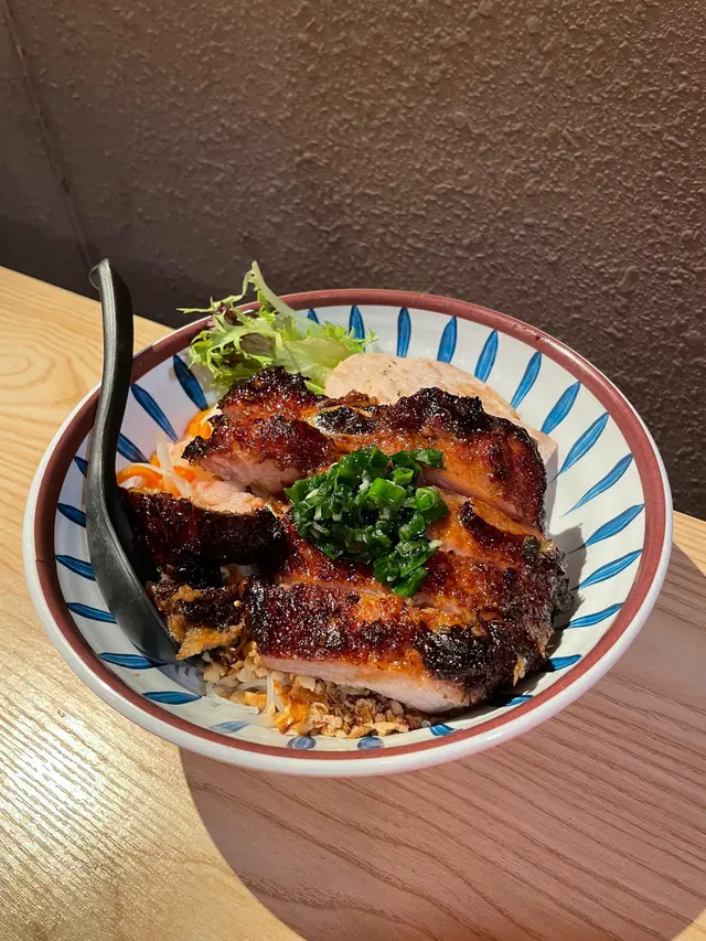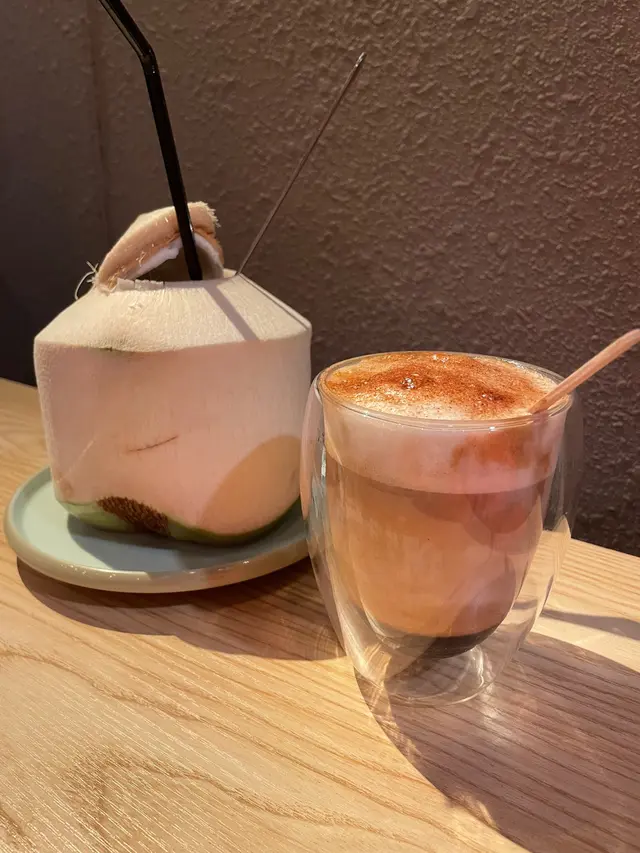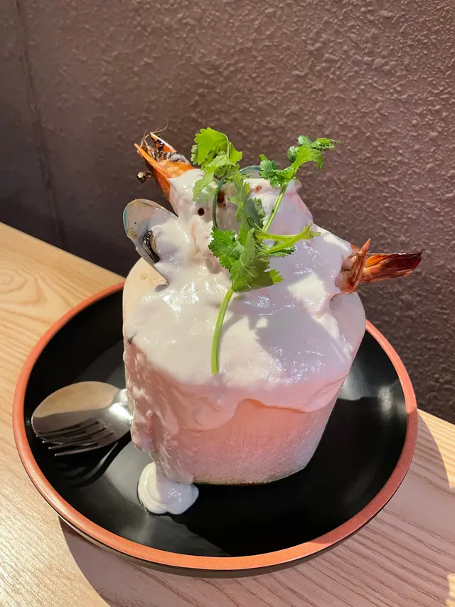 #20240307 📝📍 越南老街筲箕灣南安街93號鯉景大廈地下A號舖➖➖➖➖➖➖➖➖➖➖➖➖➖➖➖➖➖#碳燒豬扒配扎肉撈檬 $68💭 第一眼望落就見塊豬扒好大塊,成個碗面九成位都係佢🐽加埋啲扎肉同配料根本見唔到啲檬粉咁滯😬啲花生同炸蒜令個粉香口左好多🥜豬扒有蜜汁味,鬆化得尼仲好淋,好似啲半肥瘦叉燒咁好好味😋.#原隻椰青海鮮焗飯 $138💭 面頭係椰漿同海鮮,有蝦🦐青口同魷魚🦑入面係炒飯,原個椰青咁樣上都幾打卡able📸椰青入面啲肉可以刮落尼食,原先覺得個炒飯味道比想像中淡,但反而同啲椰青肉幾夾,太重口味就會食唔道啲椰味🥥.#新鮮椰青 $48#薄荷朱古力咖啡 #熱 $38💭 尼到啲東南亞餐廳點可以唔叫返個椰青飲下,非常清甜,啲肉都好滑好嫩😜越南另外出名既野飲就係咖啡,呢度難得有好多唔同款既咖啡,試左薄荷朱古力幾好飲,咖啡味唔會好濃烈,撈勻尼飲薄荷味比較出,係另類提神🇻🇳.…Read More