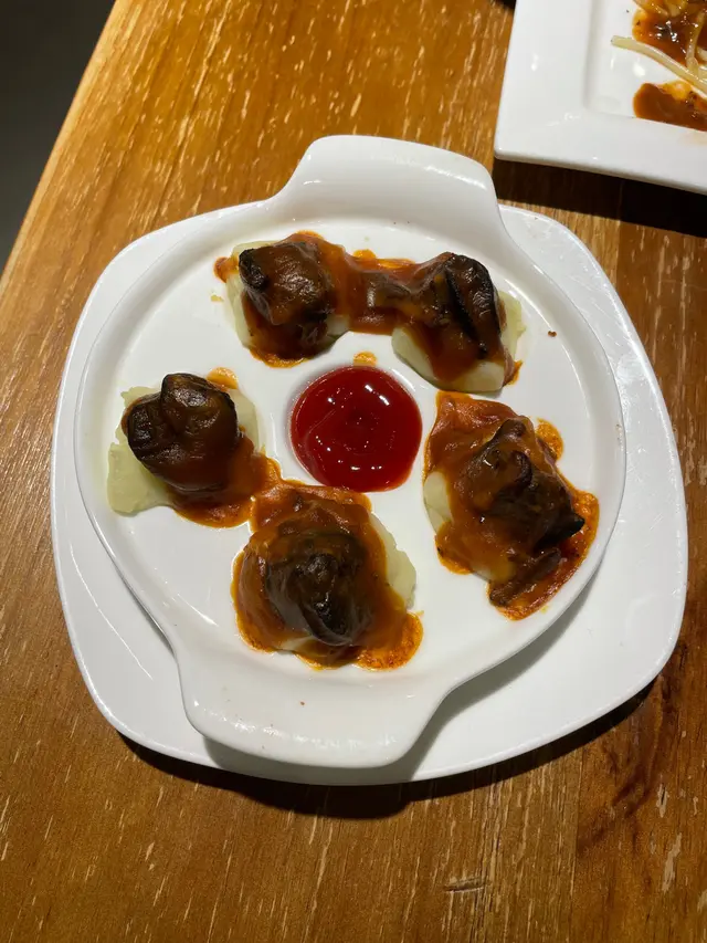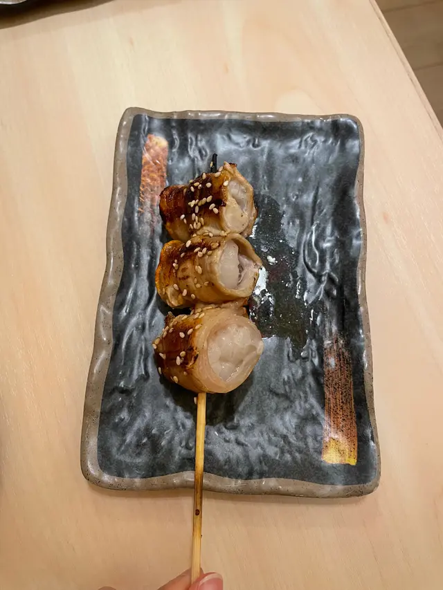 #20240222 📝📍 匠森串燒 @jiangsen_barbecue 觀塘成業街15-17號成運工業大廈1樓3室➖➖➖➖➖➖➖➖➖➖➖➖➖➖➖➖➖#燒蒜芯 $25#墨魚腸 $22💭 唔係好多串燒舖有蒜芯食,用汁燒而無用孜然粉令到佢食落juicy唔會乾,又唔會好大陣蒜味好食🧄墨魚腸切左粒上方便share食,其實同台灣腸無咩分別,只不過係黑色版,鐘意台灣腸既朋友應該幾岩食🖤.#燒雞皮 #兩串 $28#豚肉荔枝卷 $35💭 兩樣都係第一次食,燒雞皮原來無想像中咁肥膩,燒到脆脆地,咬落卡嚓一聲,輕輕用鹽調味已經好好味🫙豬肉片入面包住荔枝幾特別,咬落爆汁而且好甜,幾開胃🐽.#招牌風味烤豬手 $58#秘製燒豬頸肉 $58💭 豬手應該係先煮淋左再燒,表面脆口但入面好淋,食落有膠質,感覺補充左好多骨膠原~豬頸肉爽口,本身無乜調味全靠個黃芥末醬,未試過咁食原來都幾夾😋.#汁燒安格斯牛仔骨 $78#燒雞中翼 $20💭 兩樣都燒得岩岩好唔會過熟,牛仔骨有3塊,上枱果陣仲見到粉紅色,食落juicy非常好味🤤雞翼用孜然粉調味,調得唔會過分唔會死咸,而且大隻漲卜卜望落吸引🤩.#秘製黃金香蒜茄子皇 $48#燒菠蘿 $28💭 茄子有兩款揀,揀左蒜味,佢同平時食果啲有啲唔同,面頭好似打左個芡咁,可能因為咁個茄子望落未算好透但食落又ok喎🍆師傅好貼心咁最後先上燒菠蘿,都幾大份,好多汁好甜,臨尾食可以當甜品🍍.#觀塘美食 #觀塘黃店 #🐷在觀塘 #🐷_食 …Read More