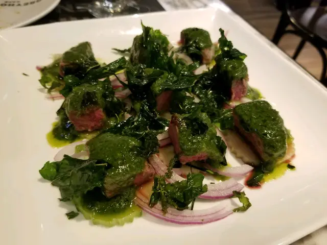 呢間餐廳價錢唔貴,食物質素唔錯,成日都轉Menu,晚餐又唔限時,好啱同朋友吹水食飯。已經幫襯過好多次了。雖然次次幫襯成日都有中伏菜式,但我好鐘意佢既泰式牛柳粒,同埋有好多小食選擇,所以keep住都會番黎。環境闊落,唔會坐到好迫泰式牛柳粒有d 似泰式生蝦醬,酸酸甜甜好開胃,牛柳5成熟,仲有炸脆了的菜,估係九層塔掛,勁正牛油果大蝦沙律新出的菜式,因為我係牛油果控,所以見到就即刻點黎試了。估唔到有驚喜,本來仲擔心d沙律醬會好漏,但調配得好好,個醬唔係普通沙律醬,口感好清淡同creamy,配埋火箭菜同大蝦,最後我朋友同我爭住食墨汁海鮮意粉有d麻辣,好醒胃,海鮮足料,份量不多不少,兩個人share剛剛好,可以一試今次幸運地冇中伏,開心的一餐…查看更多