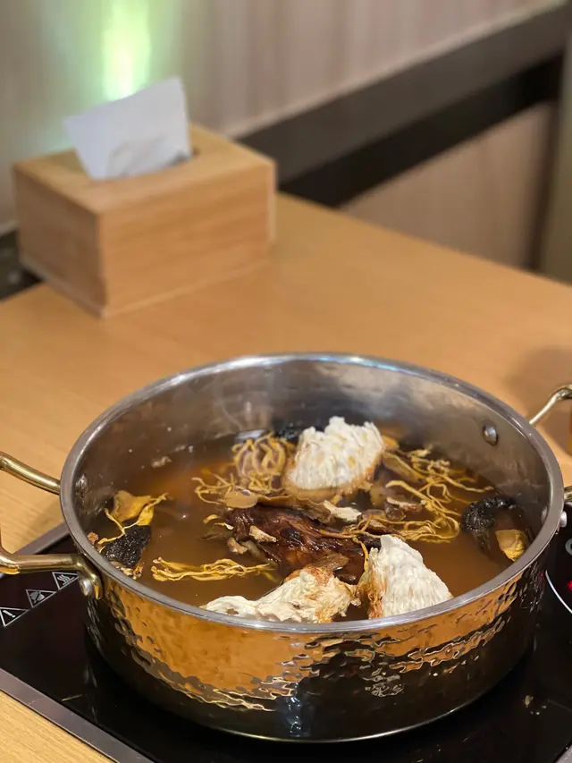幾個月都冇打過邊爐,早前同朋友夜晚去咗將軍澳呢間台式一人一鍋,有幾款唔同嘅套餐可以選擇,我哋選擇咗可以任食美國Prime Grade 極上牛頸脊同埋西班牙伊比利亞黑毛豬嘅$298放題套餐。呢個套餐除左一般火鍋食材嘅任飲任食,仲有埋Prime Grade牛肩胛肉、西班牙無激素豬肉片、台灣沙茶牛肉、精選雞腿肉同埋深海魚柳。每款肉嘅味道其實都幾好,不過當然我哋主打都係食極上牛頸脊同埋黑毛豬啦。極上牛頸脊肉質鮮嫩,口感柔軟。而西班牙伊比利黑毛豬肉質豐腴,口感鮮美。我地都忍唔住食左好多。湯底方面,我同朋友分別揀咗藥膳椰子清雞湯同埋藥膳蟲草花桃膠雞湯。椰子雞湯嘅味道清甜,無論係配肉類定係蔬菜類都非常適合。至於藥膳蟲草花桃膠雞湯都係一個非常有益健康嘅湯底。蟲草花具有補肺益氣、滋陰潤燥、提高免疫力等多種功效。而桃膠就係一種高膠原蛋白嘅食材,有助於美容、滋潤皮膚、保持關節健康等等。打邊爐嘅同時可以食到養生嘅食材,一舉兩得。另外丸類方面,我覺得呢到嘅手打牛丸同埋芋泥貢丸都好好食。深海魚柳好嫩滑,都好值得食。最後有任食嘅Movenpick雪糕,不過我比一款柚子乳酪味嘅Gelato吸引左,就放棄左Movenpick。…查看更多