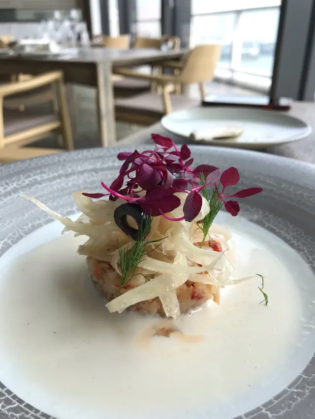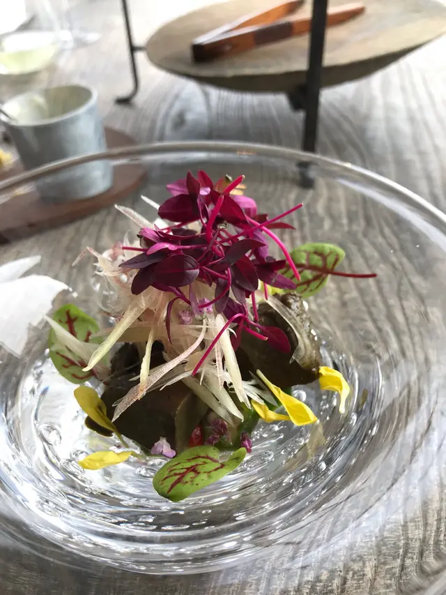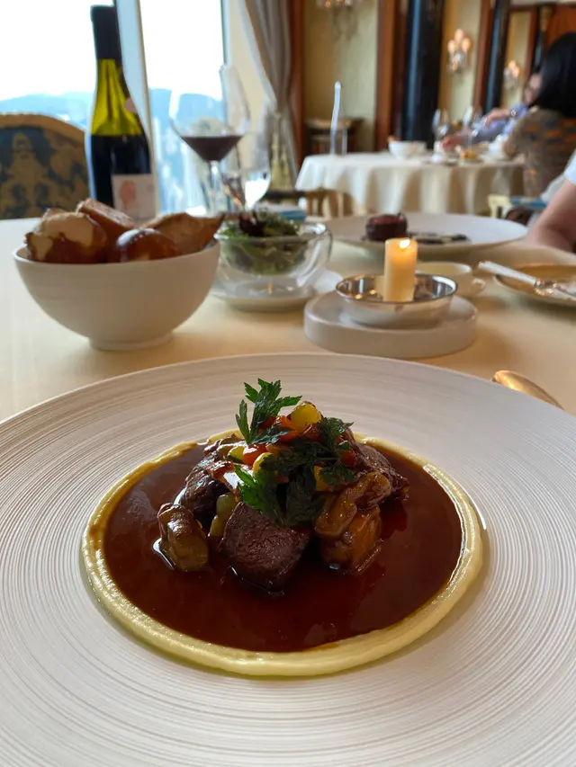 The food is much more delicious and presentable than their simplest menu, full of surprise. The ingredients mainly from Japan,even veg and fruits. French Japanese kaiseki style. What I like most is the different set menu has totally different courses as well, so we could taste a bit more varieties. The cutlery are delicate and some are custom made,go well with the dishes. The weather is a bit foggy,a shame with such a harber view. There are only 2 table of guests, I really wonder how they survive even with not cheap menu, consider the rental,labor and imported ingredients⋯⋯…查看更多