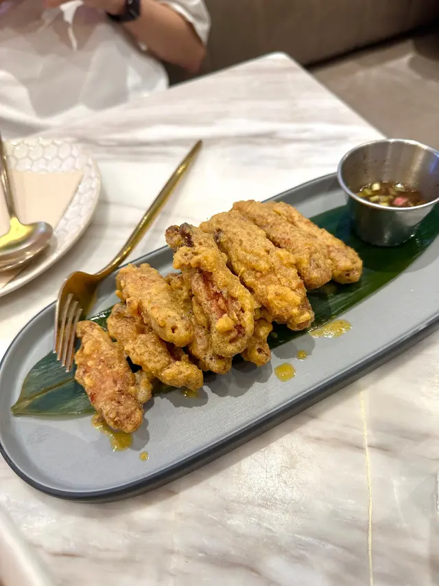 🌟尖沙咀k11高質大份泰國菜🌟@ahan.thai⠀價錢同份量同味道成正比👍🏻次次都飽到嘔咁走😹⠀炸軟殼蟹米紙卷配牛油果醬 3件 $78味道ok配牛油果醬 酸酸地幾開胃⠀泰式鹹蛋黃金單骨雞翼 $78超邪惡 好惹味泰又話啦菠蘿雞肉炒糙米飯、炭燒牛肉串燒 $148好好食 調味好好 會想一啖接一啖每啖飯都會食到菠蘿同雞肉不過就有少少油牛肉串都好好食 好香💯⠀泰館養生野薑虎蝦炒泰國新鮮卷粉 $128超級辣 好惹味🔥虎蝦好大隻好彈牙💫卷粉有啲似煙靭啲嘅腸粉 幾特別⠀椰子沙沙配芒果雪條凍 $68打卡一流 好飲 雪條好食🥭⠀———————以下呢兩款可以考慮吓嗌唔嗌,因為小編覺得一般般🙈⠀豬肉,肉丸濃湯船河 $92份量好多好大碗湯偏甜 味道一般最大問題係豬肉超騷🥹⠀泰式棕櫚糖炭燒雞 半隻 $178第一次上菜嗰陣啲雞肉仲係好生❗️中間血淋淋 叫左侍應拎入去再煮煮雞肉幾滑 不過小編嫌佢無咩味食咗幾舊好快厭🫠不過菠蘿好甜👍🏻…查看更多