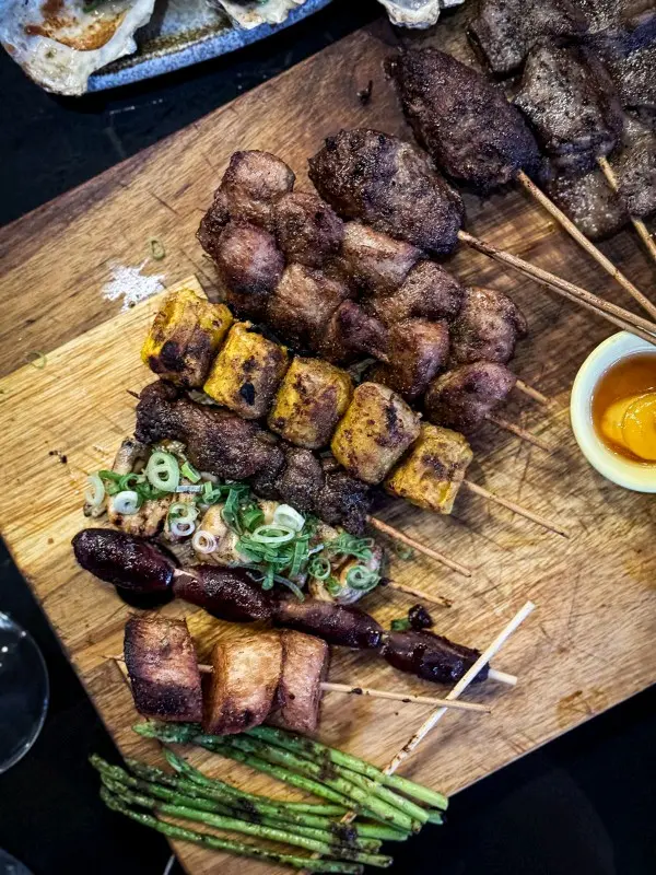 芝加哥可以話係童年回憶任同區餐廳點變佢都係原址一直默默做週末經過見到都好旺場應該算係大埔人心中嘅串燒宵夜之選以前同朋友嚟睇波都係嚟呢度嘢食質素唔錯而且人價錢相宜整體CP值都幾高食過咁多次就嚟綜合返以下兩大類推薦款必食同可返啅推薦:鹽燒牛舌心、無骨白饍、招牌牛骨髓、自家製牛肉棒燒粟米、燒翠肉瓜、一口京蔥串、牛油果豚肉燒同味噌甲羅燒以上嘅都係我每次嚟必點嘅而且朋友食過都會二、三刷特別鍾情個燒白鱔真心係外皮超脆內裏肉質爽彈牛舌芯都好嫩入口唔會乾柴雞肉棒就成日食但牛肉版本都係第一次唔錯幾有牛嘅油香!有胃口可追加:炭燒豬頸肉、羊肉串、鹽燒雞皮、雞皮墨魚滑鹽燒多春魚、燒茄子、蘆筍、淮山同燒菠蘿等以上係可以留quota 食因為味道都係唔錯特別係個燒豬頸肉真係好入味又唔會好油膩不過胃口有限就可以留下round 追加但未必係must…查看更多