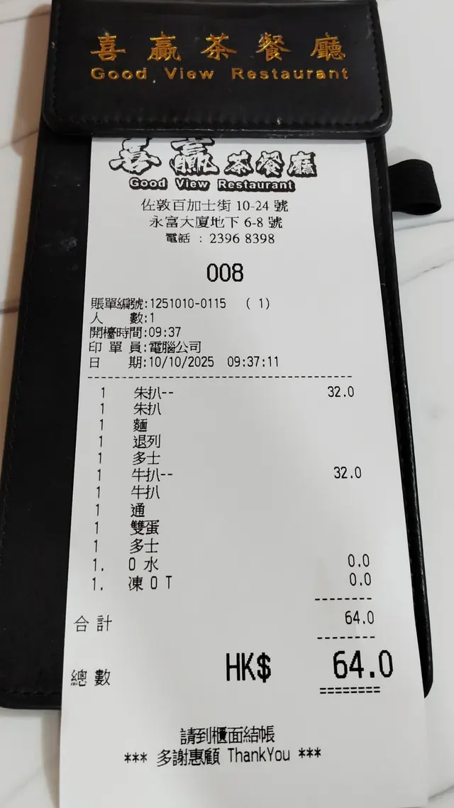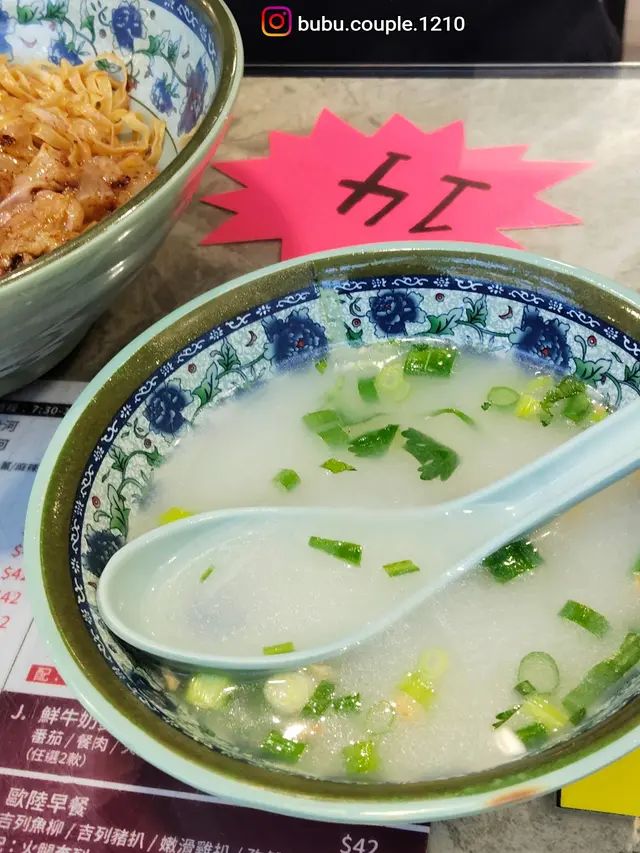 因為搬左去佐敦,係屋企附近發現呢間茶記,食過呢間早餐同tea,有次早餐見到隔離枱有人食牛扒?所以今次我又試下牛扒(薄既)配通粉,雙蛋跟多司,要熱檸水($32)老公叫豬扒(小小薄)跟出前一丁,奄列配多司,飲凍檸茶都係($32)我一路等,一路上網search下大X樂,大X活,大集團賣牛扒早餐幾錢,點知2間連鎖都做唔到$32,呢間真係好平。老公係叫出前一丁,但佢話唔係出前一丁,因為個湯底唔係,但我有試過麵質係出前一丁,但唔知點解個湯底冇跟返出前一丁味精粉。…查看更多