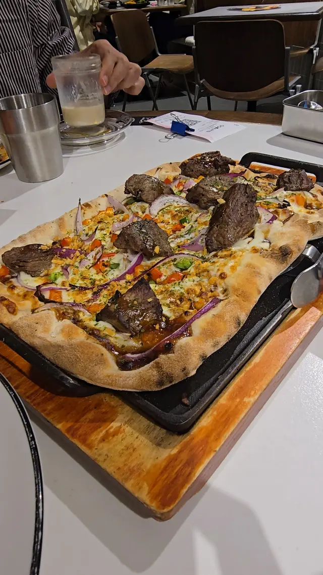 去啟德試GoNuts,4個人叫左小食拼盤,意粉,漢堡同pizza,另外叫左兩款甜品。意粉係卷卷粉,質感有啲似通心粉,都幾得意。滿滿既菇菌,卷埋忌廉汁食幾好味,不過算細碟少少。小食拼盤特色係生炸口水雞,沾川椒麻辣醬食,少麻少辣又唔柴口。牛肉漢堡事先切開一半訓係鐵板,再淋熔左既芝士係面。咁食漢堡都幾方便只係個包浸得耐肉汁同芝士,淋左啲無咁脆,不過薯條反而好食左,真係兩睇。蒜香牛柳粒Pizza,沒有不好食的道理。嗜甜如我,兩款甜品都好滿意。麻薯窩夫外香甜內軟糯,千層塔鬆脆得黎帶絲絲甜味。整體黎講食物好味,只係我地揀既菜式無乜亮點。我個人覺得最好食係兩款甜品。如果再去會想試Risotto 同烤雞。白松露油忌廉野菌汁卷卷意粉 $102小食拼盤 $158芝士熔岩雙層手製牛肉漢堡 $158和風蒜香牛柳粒Pizza $153香蕉朱古力奶昔 $66三重朱古力麻薯窩夫 $82曲奇忌廉千層塔 $78…查看更多