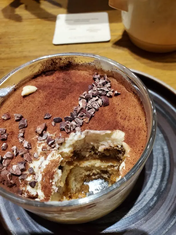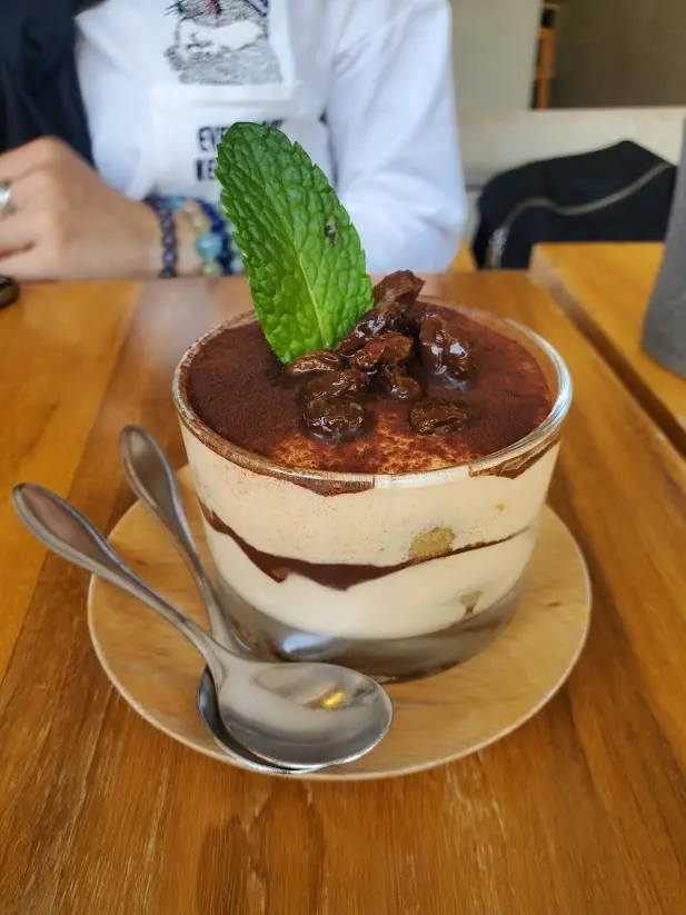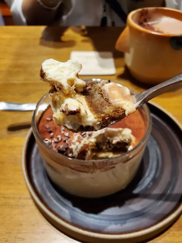 等待食物飲品時,見周圍都有其他客人舉手都睇晤見,有點怠慢。全餐廳只有一位店員可以落客落單,要人等到頸都長先落到單,難怪見到那麼多負評?餐廳都坐晤滿就知出事。點了一款白桃烏龍茶及草鮮奶咖啡,再加了一個草莓焙茶戚風,以前都出的白桃烏龍茶是大茶包加個壺,現在一個大茶包放落細mug杯,有冇那麼求其?