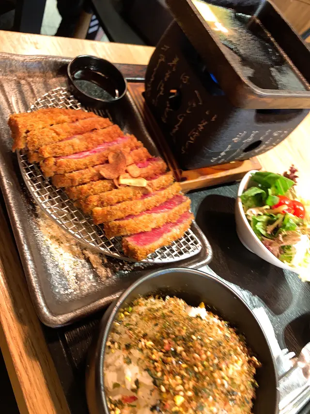 牛牛 Steak Bar 2021-02-26吉列牛扒(牛頸的位啲牛扒都算幾大塊,一來到就有塊牛油🧈係度燒🔥緊,要預熱幾分鐘等啲🧈溶掉就擺啲牛排上去,一擺落去滋滋聲,好快就熟火候都夠大,燒到出肉汁就可以燒另一邊(鍾意食9成熟)🤤帶出牛肉味道,吉列嗰皮都做到脆卜卜,食落口外脆內軟😍另外會配埋白飯,豆腐,沙律,白飯灑上大量飯素,配上一口牛肉好有滿足感蜜糖雞翅(3隻)大大隻香烤的雞翅,好脆口,肉質鮮甜,不過嗰皮有啲辣辣地,一入口會刺激味蕾,之後先會甜有蜜糖的滋潤😍雞軟骨餃子🥟入面有啲粒粒脆脆嘅口感,嗰餃子四角有啲硬…查看更多以上食记乃用户个人意见 , 并不代表OpenRice之观点。赞好分享牛牛 Steak Bar https://s.openrice.com/QrLT0f2Sy00检举 张贴 评分4味道4环境5服务4卫生4抵食用餐途径堂食