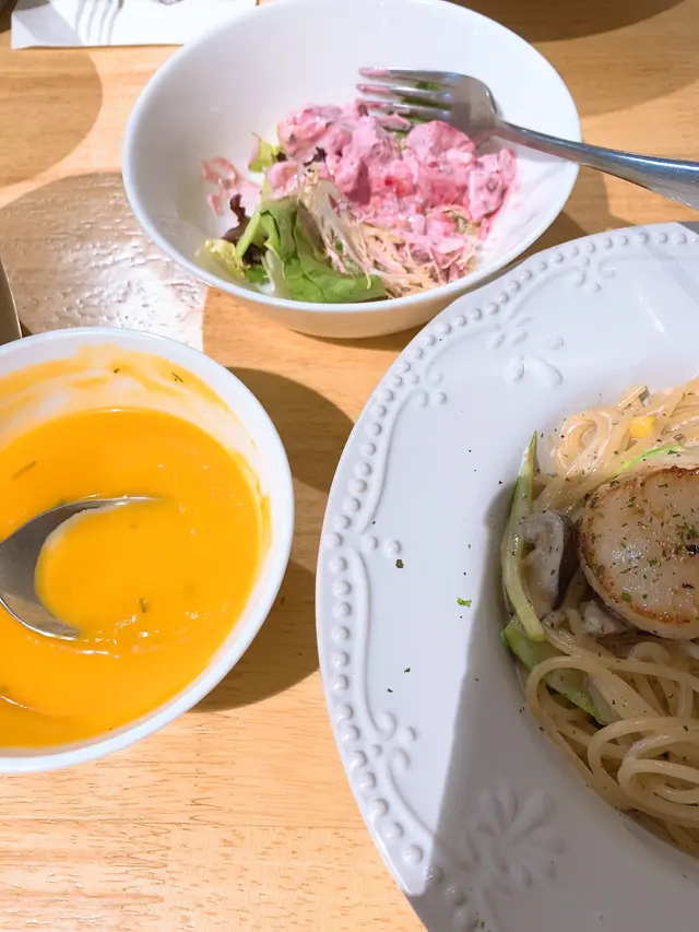 一定飽嘅set餐 Call Me Chef 2021-01-17本身打算食完主食再食千層蛋糕,但主食太飽喇封煎北海道帶子配黑松露奶油意粉🍝$108前菜有沙拉同埋南瓜湯,有啲驚壓沙拉醬係紅色幾特別,南瓜湯就淡淡清香🥣 2粒大大嘅帶子煎得剛熟唔會過火,配埋啲意粉幾好食😋有啲飽 仲有球雪糕送🍦抹茶latte $48本身以為外貌唔吸引,但飲落又OK幾好飲😋 不過唔算重抹茶味…查看更多以上食记乃用户个人意见 , 并不代表OpenRice之观点。赞好分享一定飽嘅set餐 Call Me Chef https://s.openrice.com/QrLT0qBqx00检举 张贴 评分4味道4环境5服务4卫生5抵食用餐途径堂食