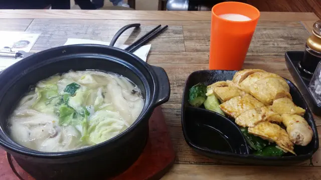 下午茶時段黎,但係無俾個下午茶餐牌我,所以叫左午餐。我本身冇留意,係隔離女士發現li個問題,另外佢叫熱豆漿又5幫佢加熱,拎杯凍左既比佢。間鋪仲做緊少少裝修,鑽緊牆,嘈。個老細做教緊伙記用收銀記。但係d伙記都主動落單既。醉雞面包野飲,56蚊, 加左3蚊轉刀削面收59蚊。份量多既。好大隻雞脾同多青瓜,不過係淋醬油係面,d花鵰酒走左去d湯到。雞都ok,冇咩雪味。多青瓜係底,作為冷盤5錯。佢個賣點係藥膳灌湯面。湯底ok,有木耳,菌類,都有鮮味。 個刀削面有待改善。見到係即整既,但係個長度同粗幼都5係好好咬,有d太薄好快浸落湯爛左,又冇咩韌度。豆漿1般。…查看更多