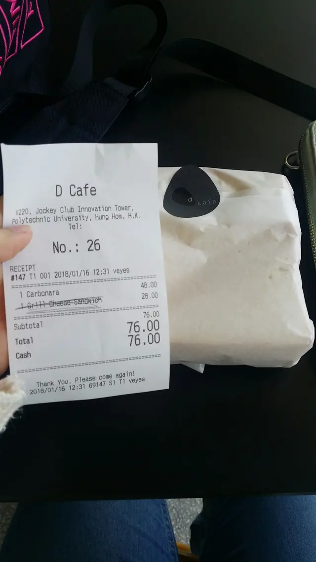 之前行過見佢開係 v 座平台,環境好唔錯。外面既台同椅都係designer設計,好有特色。另外有個做hifi播緊chill既音樂。價錢係學校入面算偏高,不過就係市價。當然expect佢有出面質素啦。個grill cheese sandwich係令人失望,無咩cheese又無咩味。 外面都脆。個carbonara都ok既。個汁收得5錯,味道正常。個size就偏少。服務方面,因為係叫號碼取餐,人手5夠個waiter都搵出黎俾番個餐我…查看更多