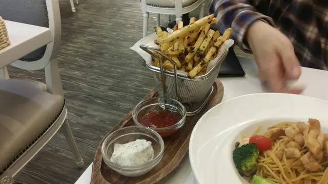 午餐幾抵,芝士焗吞拿魚意粉,薯角,沙律同凍檸水。我5特別鐘意吞拿魚不過味道食落5錯。焗得岩岩好,份量都剛好。連可愛既擺盤上影相呃like5錯。li到出名食pasta.我叫過既沙嗲牛通都幾好。價錢ok…查看更多