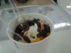 去開南豐,想食Froyo,於是去咗Cherry On Top。。。得番4種味,有青蘋果味,原味,石榴同蜜桃熱情果味。要原味,石榴同蜜桃熱情果味。配料有:椰果蜜桃Oreo彩針爆珠焦糖醬------味道原味---8/10OK,酸酸地石榴味---2/10麻麻地,好似肉桂味咁!蜜桃熱情果味---5/10OK,但無乜蜜桃味剩惠$47…查看更多