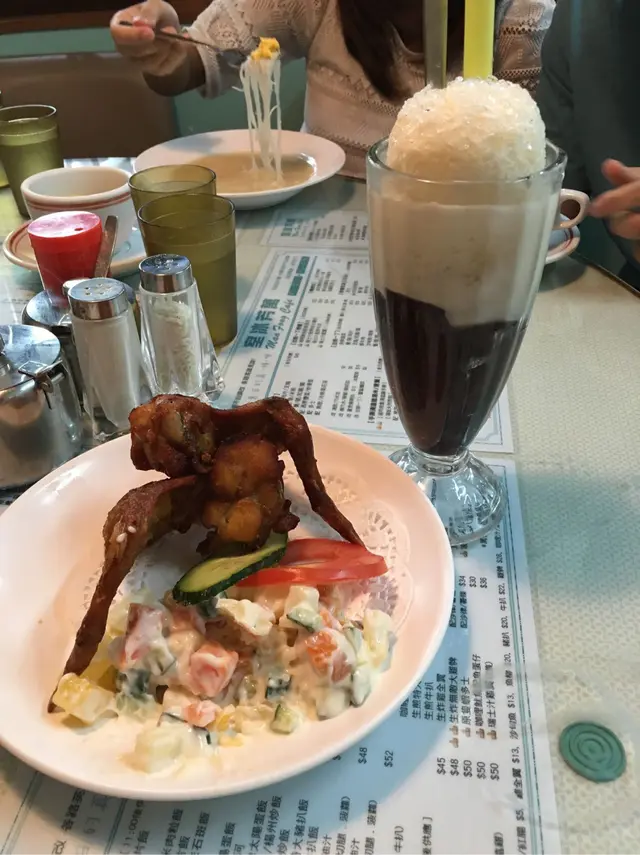山長水遠入來元朗來試下老字號充滿懷舊風味的萬芳冰室,特登來試下巨型炸脾,中午去到已經開始排隊,大約20分鐘就有位,位置唔多,需要搭台,比較逼,裝修好有懷舊感。生炸雞全翼(2件)配沙律(HKD 33)雞翅炸得有D乾,不過好脆,又入味,個沙律青瓜蘋果紅蘿蔔好新鮮配買薯仔,真系好好食。生炸招牌大雞脾配薯條(HKD 43)不愧系大雞脾超級巨型大過我塊面😂我一個人根本食唔曬,肌肉入味,肉質感覺一般,無咩驚喜,就系一個比較大的炸雞脾。萬芳招牌紅豆冰(HKD 27)最有驚喜紅豆冰,紅豆粒粒分明,食落口起沙,甜度適中,非常好飲。…查看更多