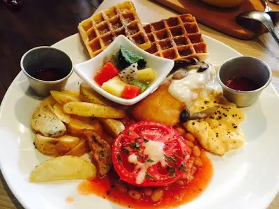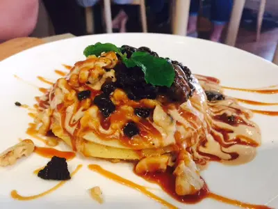焗忌廉汁肉醬絲粉:螺 賣相不錯, 而且新鮮熱辣, 肉醬加上煙肉味道濃郁, 每條螺絲粉勻吸收了醬汁, 滋味無比. 且份量剛好, 女生吃也不會覺得過太多. 脆香炸魚柳鬆餅: 類似all day breakfast 吧, 有齊鬆餅, 焗豆, 炸魚柳, 炒蛋, 炸薯角, 小水果杯. 顏色豐富~炸魚柳最好吃, 外脆內軟, 鬆餅再脆身一點更佳. 焦糖咖啡合桃pancake: 三件班戟疊起上加大量香甜焦糖醬, 實在令人食指大動! 班戟做得鬆軟, (如果可做~厚一點更好啦). 碎合桃+oreo有點晴之用, 同時令整體口感提升了不少, 吃著很有滿足感~ 如作飯後甜點, 建二人以上共享.…查看更多