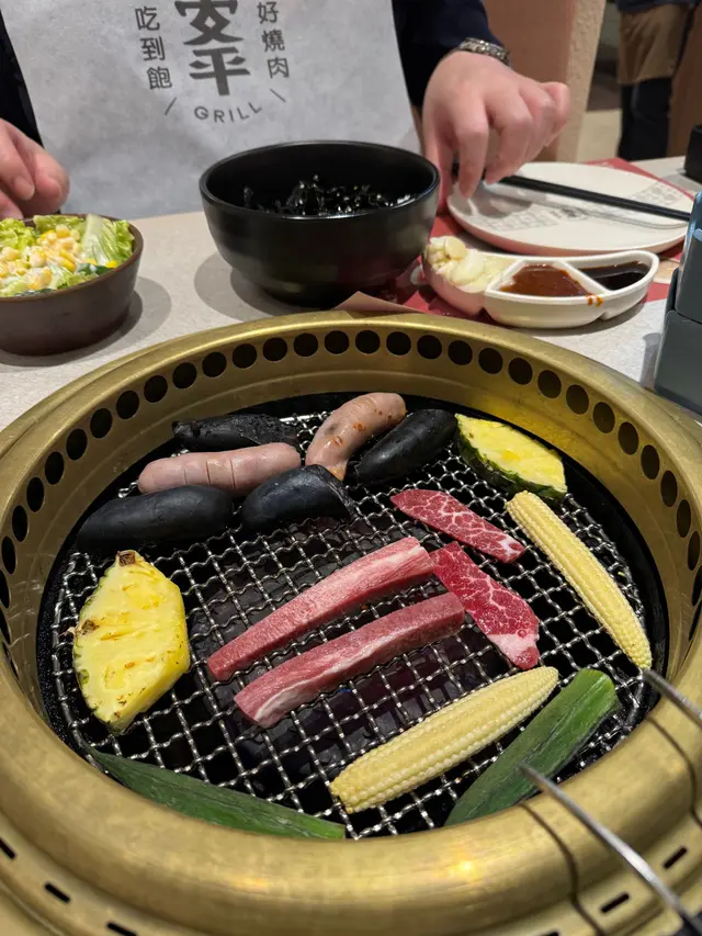 友人突然想食放題燒肉我就係openrice揾下比我睇到呢間做緊優惠望下大致有乜野食就預訂埋個餐呢間我係旺角店食過今次試下到訪將軍澳分店我哋今次揀咗M5和牛餐比起其他餐多咗以下食物1)期間限定食品(和牛片)2)嚴選牛舌芯(每位送一客有4條) (中間位置)3)安格斯牛小排4)澳洲M5和牛多總括黎講黎呢間食一定要揀M5和牛餐或極黑牛餐因為除咗以上4款肉同三角牛肩肉外係可以𡁻到既肉,其他係𡁻到有咀嚼肌睇落啲蝦好似好靚,但係6隻得2隻食得其他都係霉既個生蠔都可以,大隻冇腥味海鮮類只order一次所以炸類全部都係又硬又凍唔知自己食緊乜野有幾種小食值得一推係:有雞泡魚干、鴨舌、小枕頭、黃金泡菜可能性價比問題$500內已連加一既質素係咁上下隨意想食燒肉既還可…查看更多