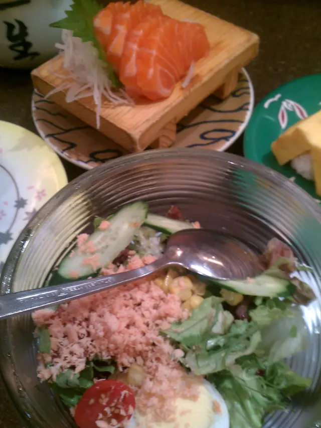 昨晚貪方便 友人又說峰壽司不錯吃 便決定試試不太饑 所以點了不太多東西必點的玉子 要了個峰玉子 少飯多蛋又不太甜十分合我心意三文魚麵豉湯夠味 配料不多 但有好幾塊三文魚 略油魚生夠新鮮 合格 友人立刻便加點了沙津就很差 份量少又有點菜是苦的 另附我不愛的千島醬:(最驚喜是有納豆壽司 之前吃納豆都是吃咖哩時才點少了咖哩原來挺臭的 試著加多點芥末和豉油 一個字"正"當然納豆如榴槤不是人人愛 友人say no 我就喊encore 呵P.S這分店環境挺闊落 服務也不錯但熱情的"13媽4"不斷 不是聊天好地方 還有點好笑 XD…查看更多