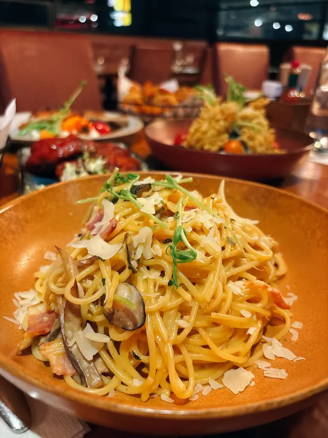 夜晚收工,拖住老公仔嘅手,諗住慰勞下自己成日返工咁辛苦💪。唔想煮飯,又想食好嘢,就決定去盲測一間餐廳🍴。餐廳入面盞巨型吊燈勁搶眼,光線夠晒,坐得好舒服。雖然冇包廂,但係靠窗邊嘅位都幾開揚,可以望下街景。成間餐廳都好熱鬧,聽到隔離枱啲人吹水,感覺幾輕鬆㗎。不過提提大家,呢度要收加一服務費,茶位費每人12蚊。上湯焗澳洲龍蝦伊麵:8/10。龍蝦肉質彈牙爽口,啖啖肉,加上濃郁嘅上湯,真係好惹味😋!伊麵索晒啲湯汁,食落好入味,不過如果可以再彈牙啲就好喇。呢個價錢嚟講,我覺得都算抵食,起碼龍蝦夠新鮮。瑤柱貴妃雞半隻:7/10。雞皮爽脆,雞肉嫩滑,帶有淡淡嘅瑤柱香味。不過我覺得可以再入味啲,如果可以配埋薑蓉就perfect池啦!半隻雞兩個人share啱啱好,唔會太膩。明爐燒鵝皇:9/10。燒鵝皮脆肉嫩,油香四溢,真係令人食指大動🤤!佢哋嘅燒鵝真係招牌菜,好多人都係為咗佢而嚟。咬落去啲肉汁喺口入面爆開,真係正到冇朋友!雖然價錢唔平,但係絕對值得一試,物超所值!清蒸東星斑仔:7.5/10。東星斑肉質細嫩,清蒸嘅做法可以保留魚嘅鮮味。不過我覺得火候可以再控制得好啲,有啲位蒸老咗。整體嚟講都算唔錯,但係如果可以再提升就更好啦。蜜椒金薯牛柳粒:6/10。牛柳粒炒得幾香,但係有啲韌,金薯就比較甜,同蜜椒嘅味道唔係好夾。呢個菜我覺得可以skip咗佢,試其他嘢可能會更好。呢間餐廳嘅嘢食都算有水準,特別係佢哋嘅燒鵝皇,真係必點!雖然價錢唔算平,但係我覺得都值呢個價。成餐飯食得好飽,好滿足🥰!下次都會考慮再嚟試下佢哋嘅其他菜式。不過記得book定枱先,因為佢哋真係好多人㗎!…查看更多