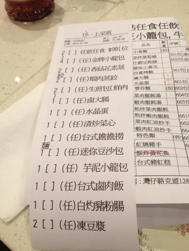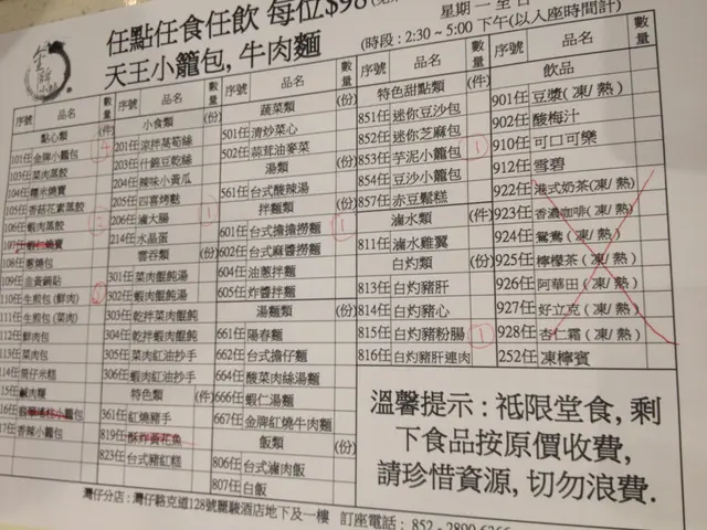 唔到你唔信,小籠包都有放題!!初初米先生講我都唔信,早幾日就即刻去試~~價錢$98/1位全包~~MENU任叫~~位置方便,就灣仔地鐵站轉左行幾步路就係喇,一去到門口,佢地既侍應已經熱情招待我地入去,因為係下午茶關係3點幾人數唔係好多,因為係任食關係,佢2個人都係俾4人枱,方便多D地方擺野!而佢地既侍應都好好禮貌,幫我地執得整整齊齊~~冇限你叫幾多轉,總之你自己食到幾多就叫幾多,如果唔知好唔好食可以叫左件數1,ok就再叫唔ok咪吞左佢算數囉XD飲品都連埋啊!!首先上既都係一D鹵既食物,飯,麵,因為蒸餃類都係即叫即蒸既關係就比較遲上枱喇!總括黎講食物質素同味道同平時你唔係放題普通散叫一樣好食,唔會話因為你係食放題,食物品質會下降~~不過而因為你係放題,佢既麵食都係俾番正常SIZE黎,所以小小TIPS就係如果你只係得2個人就唔好叫麵喇,因為好鬼/___\,如果你多人都可以叫一個SHARE既!因為其實佢係好食,但係真係飽住食唔到其他野就真係唔抵囉!個人黎講好滿意佢大部份既食物,瑤柱小籠包清清地都好好食=]…查看更多
