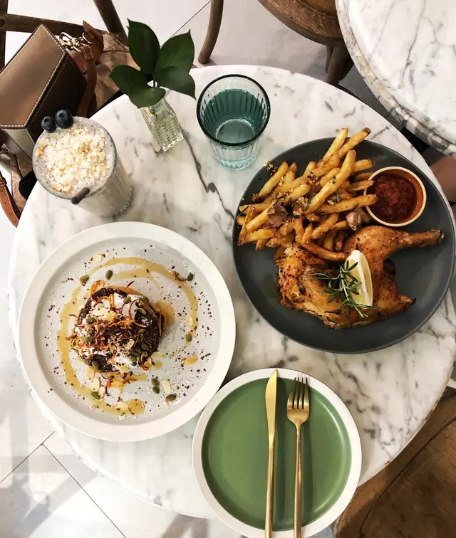 𝚃𝚑𝚒𝚜 𝚍𝚎𝚏𝚒𝚗𝚎𝚜 𝚠𝚎𝚎𝚔𝚎𝚗𝚍•¨•.¸¸♪惹味的香蒜薯條吃得不能自拔🧄🌶配上半隻烤雞,香噴噴的,份量很足,適合分享~ Berry bliss 是啖啖滿足,濃厚既smoothie有香濃既藍苺以及香蕉味~ pancake 是全素plant-based,又是另一種體驗🥞 A fresh cafe serving diverse healthy food options with organic or plant-based ingredients! The chilly garlic fries is just addictively good 🧄🤤For more good food? Follow @dungrabmyfood .#otter_saiyingpun #otter_cafe #otter_vege .Autumn/winter menu Berry bliss smoothie $62Roasted half organic chicken with fries $178 Pumpkin Chocolate Pancake $118 .14 SOUTH LANE西環石塘咀南里14號地舖…查看更多